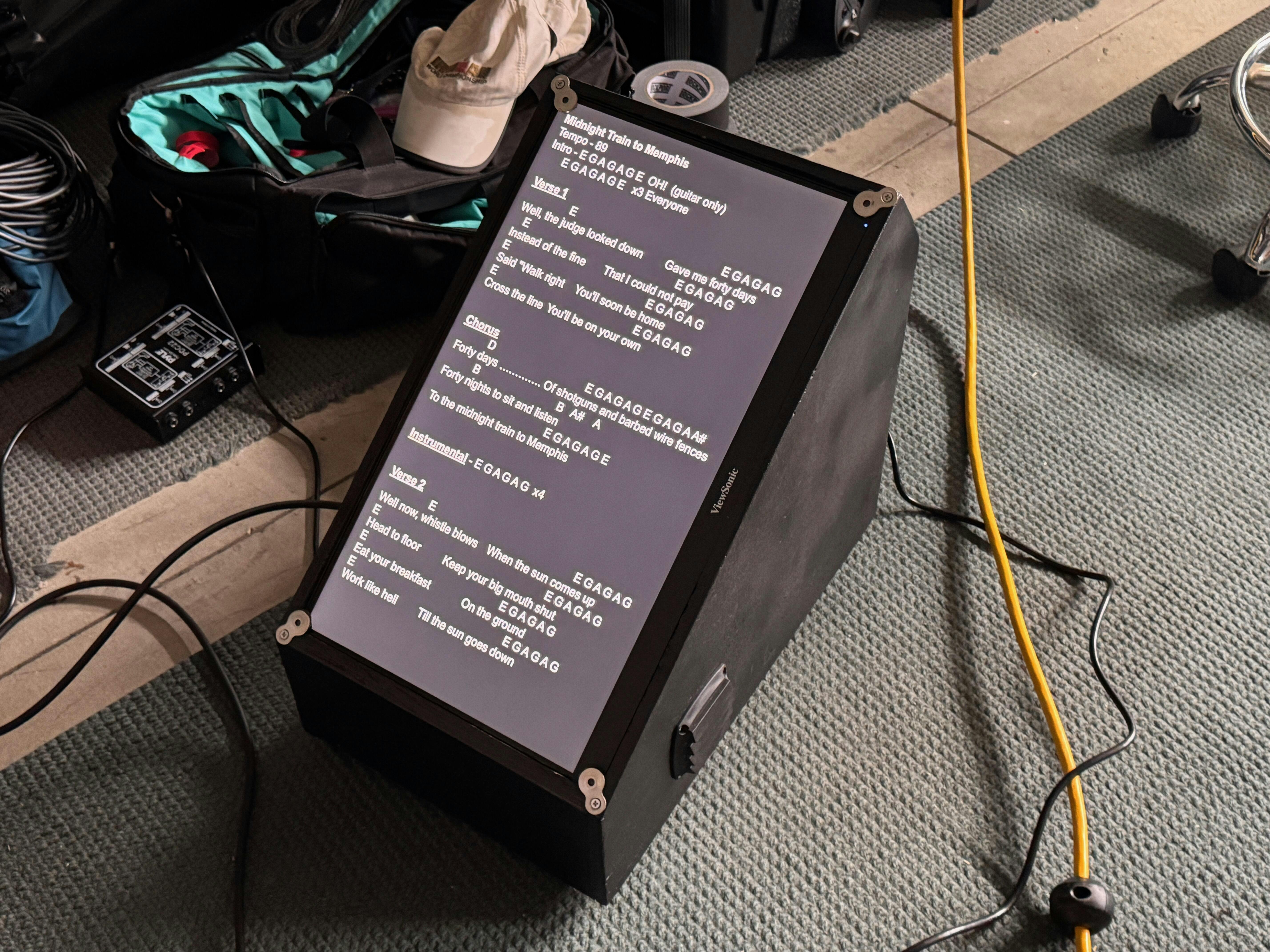 Your screen can be positioned on stage on the floor in front of you or can be mounted higher using our optional stand and mount, Ideal for Keyboards / percussion / choirs. The Controller-05 Stageprompter gives the user and fellow performers a massive confidence boost by displaying whatever the user wants to see. This could be chords, lyrics, music score, tabs, structure or whatever is required.